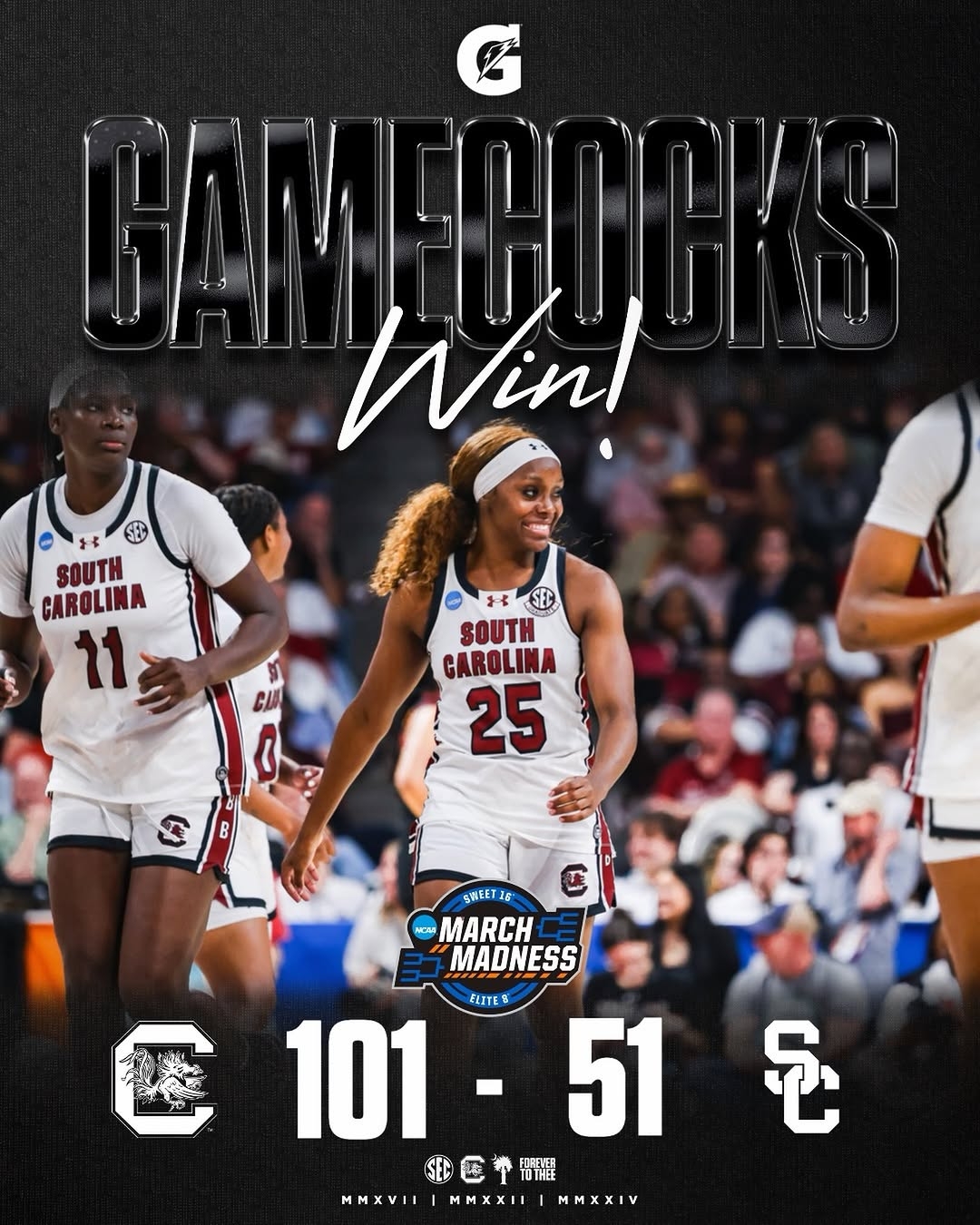 The Gamecocks routed Southern Cal 101-61 on Monday night at Colonial Life Arena, advancing to the Sweet 16 in a performance so complete, so physically dominant, and so tactically sound that it barely resembled a competitive game. This was a masterclass — in size, in preparation, and in the kind of relentless defensive pressure that has defined South Carolina’s identity all season.