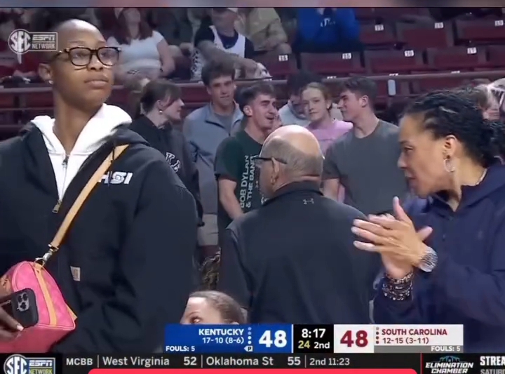 Edwards, on the other hand, was offering a dramatically different energy. The Gamecocks’ leading scorer appeared notably unbothered by the proceedings, her expression suggesting someone enduring a wait at the DMV rather than witnessing a tied SEC men’s basketball game with March implications.
