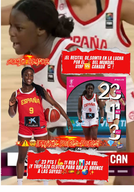If EuroBasket was her introduction, the 2025 U19 World Cup in Czechia solidified her reputation as one of Europe’s rising stars. She averaged 12.5 points, 6.5 rebounds, 1.3 assists, and 1.3 steals while again being named to the All-Star Five. In the bronze medal showdown, she exploded for 23 points, 11 rebounds, three assists, and three steals, lifting Spain to a 70-68 victory over Canada and standout Syla Swords.
