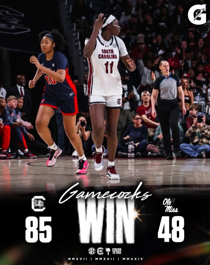 The Gamecocks went on a 12-2 run in the second quarter to seize complete control of the game, and then — in case anyone thought Ole Miss might recover — they emphatically closed the door with a 15-3 run in the third quarter to turn the contest into a blowout. By the time the fourth quarter arrived, the result had long been decided. This was not a game that hung in the balance. This was a program asserting its will.