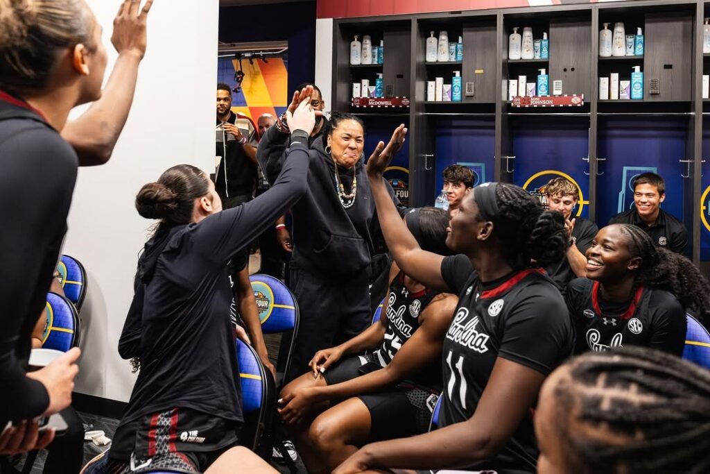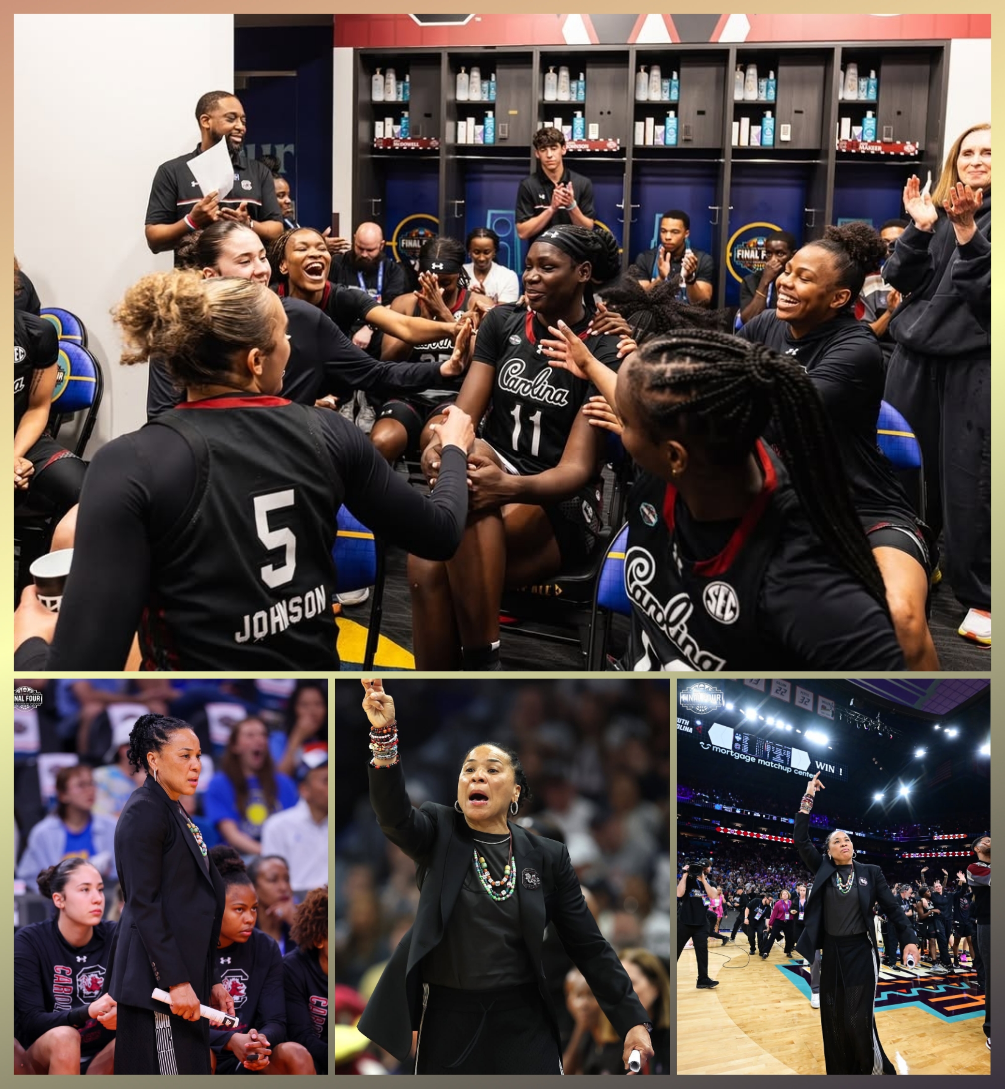 It was not just Staley. The Gamecocks themselves took the floor in black uniforms — and when coach and team share a color on a night of this magnitude, the coordination stops being aesthetic and starts being psychological.
