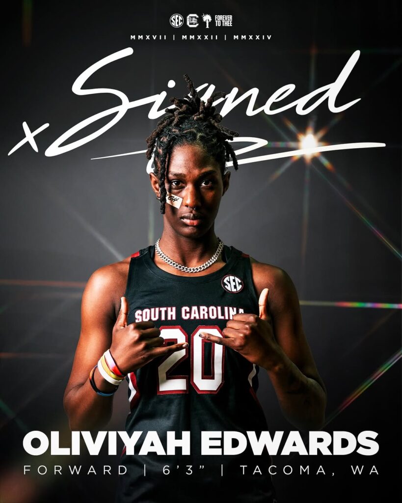 COLUMBIA, S.C. — Four days after she committed, the ink is dry. Oliviyah Edwards is officially a Gamecock — and with her signature, Dawn Staley has quietly assembled what may be the most complete roster in South Carolina women’s basketball history.