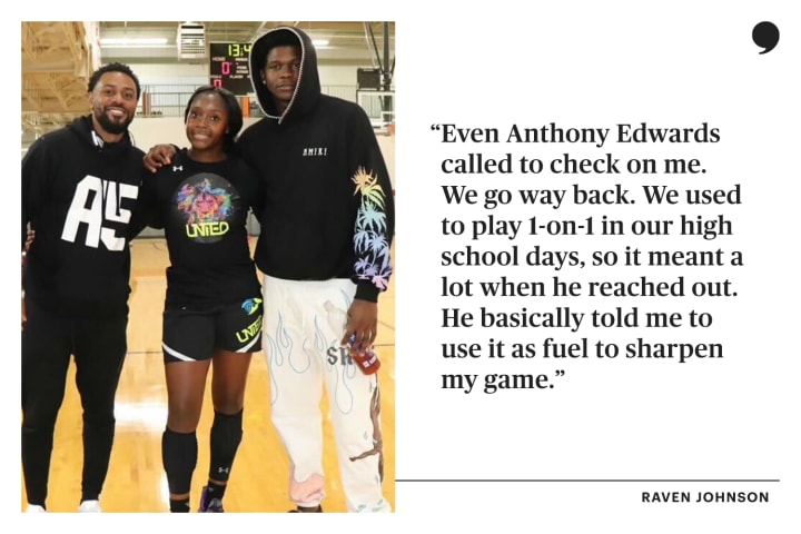 Anthony Edwards added another dimension. A childhood training partner who once backed Johnson down in 1-on-1 sessions and told her to “get your weight up,” Edwards called with a competitor’s prescription: log off social media, get in the gym, and treat the humiliation as fuel. Johnson admits she couldn’t fully follow the first instruction — she kept returning to the video, rewatching it compulsively. But that honesty matters. Recovery is rarely linear, and pretending otherwise would undermine the credibility of everything that followed.