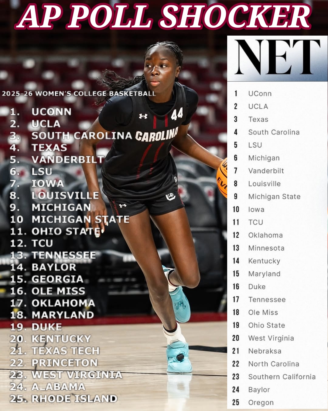 The ranking movement reflects a split week for Dawn Staley’s team. South Carolina’s loss at Oklahoma snapped momentum and weighed heavily in voter evaluations, particularly given how competitive the top tier of women’s college basketball has become.