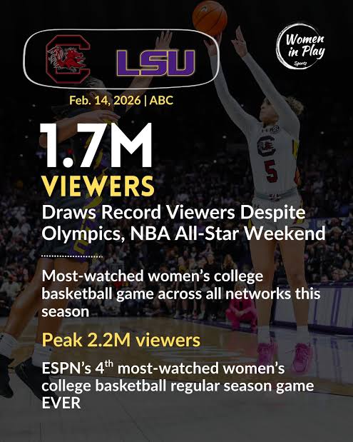 Women’s college basketball is riding a wave of unprecedented media attention, and the numbers ESPN is putting forward appear to support the narrative. The network reported its most-watched women’s college basketball regular season since 2008-09, headlined by a Valentine’s Day clash between South Carolina and LSU that drew 1.7 million viewers. On the surface, that reads as genuine growth for a sport that has fought for mainstream recognition.