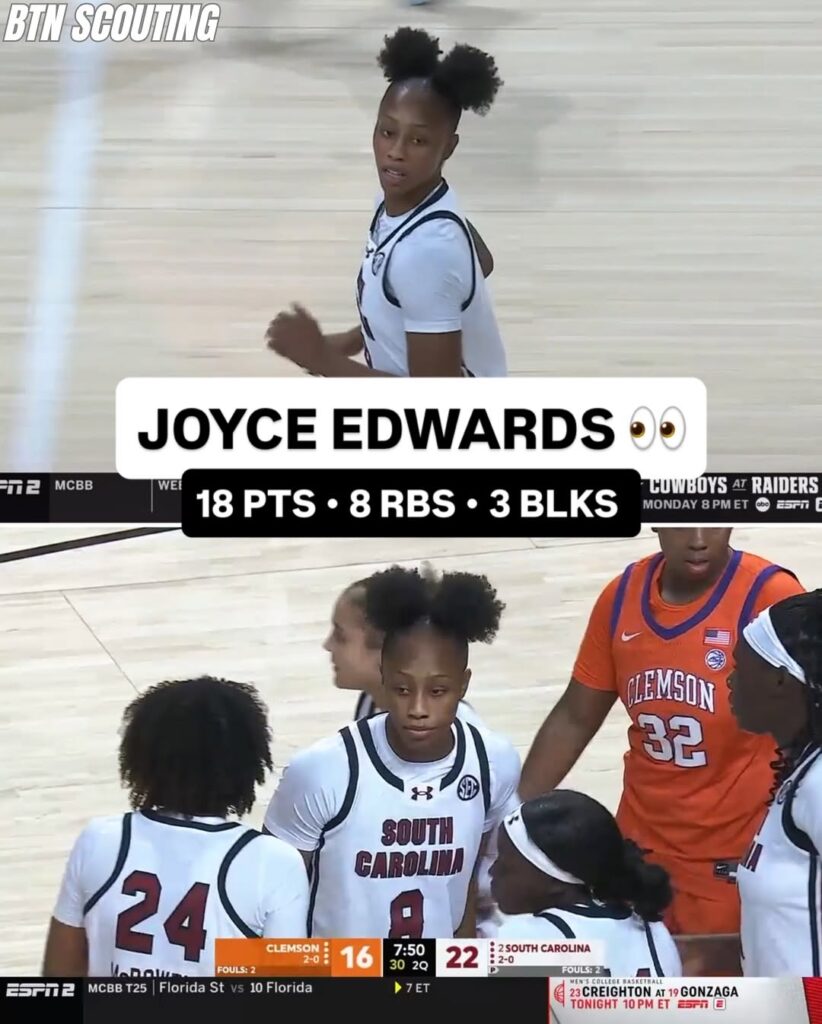 Joyce Edwards Puts on Two-Way Clinic as Gamecocks Dominate Rival Clemson