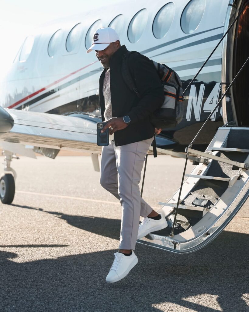 The first plane touched down shortly before 3 p.m., arriving from State College with Drayton on board. Wearing a white Gamecock cap, Drayton stepped onto the tarmac alongside his wife, Monique. After the pair made their way toward the waiting vehicle, Drayton offered his first official comments as a Gamecock.