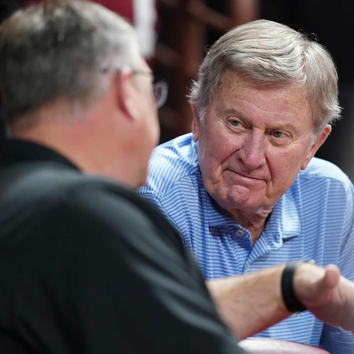Spurrier and his wife, Jerri, remain frequent visitors to Columbia, and when their trips coincide with basketball season, they make a point of catching games at Colonial Life Arena—a testament to the connection the legendary coach maintains with the program and community.
