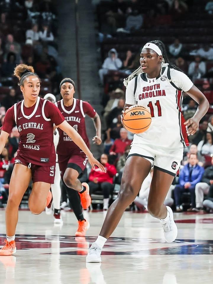The situation reached a new low against NC Central. South Carolina suited up just eight players to start the game, then lost Madina Okot to an in-game illness before halftime. With Tessa Johnson dealing with sickness and Agot Makeer still in concussion protocol, the Gamecocks were left with only seven players to close things out.