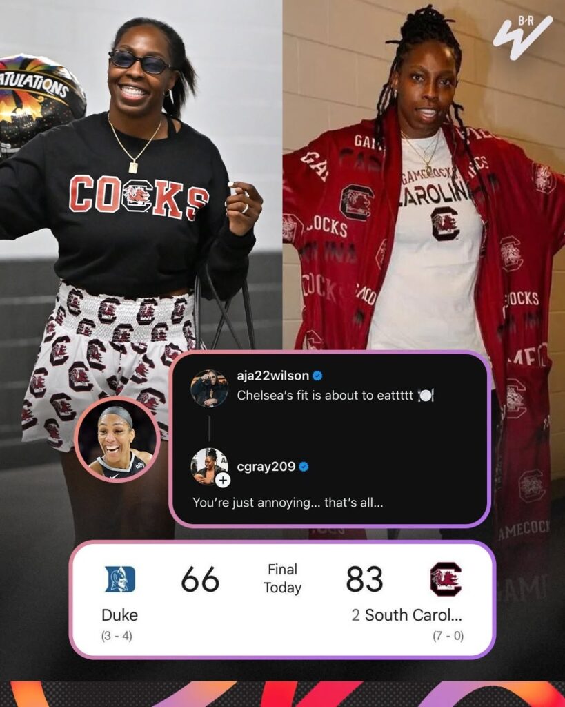 The tease came after the Gamecocks’ statement win over Gray’s alma mater, making the timing even more perfect. A’ja, proudly representing her school, couldn’t resist taking the lighthearted jab — and Chelsea embraced it like the good sport she is.