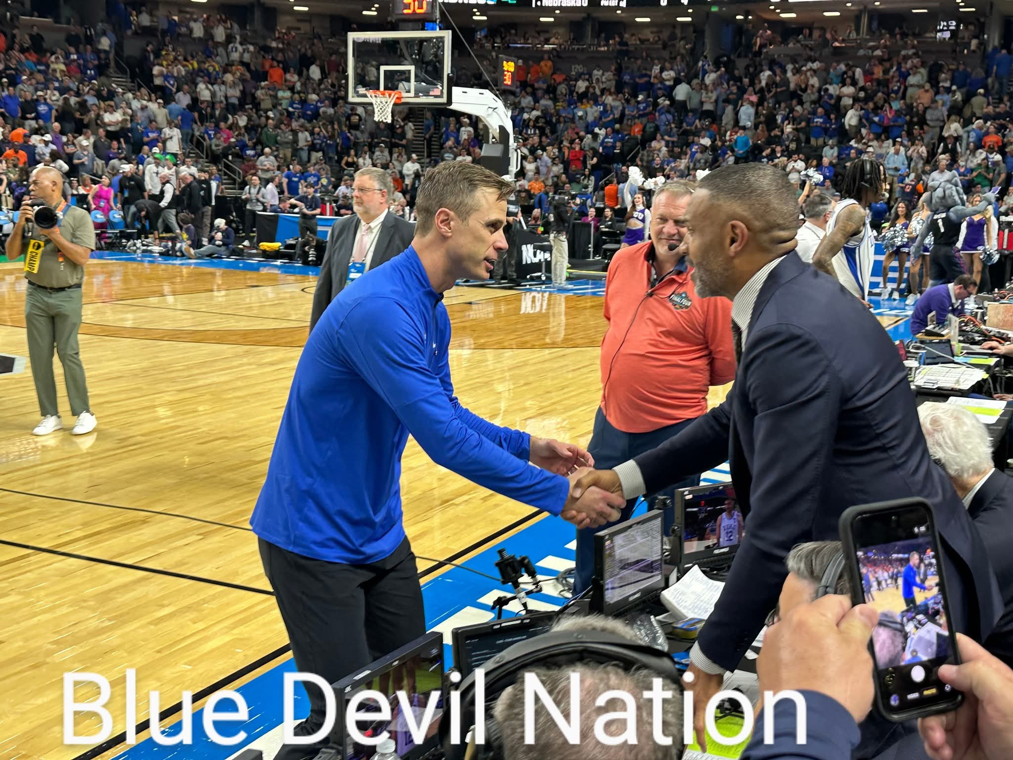 It was not scheduled. It was not a media obligation or a ceremonial appearance. It was a head coach, in the middle of a tournament run with everything at stake, seeking out one of the greatest players in Duke history — and a Hall of Famer who helped lay the very foundation Scheyer is now building upon.